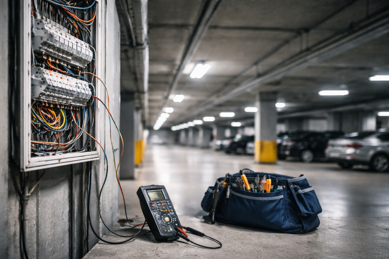 Ofrecemos servicios completos de mantenimiento eléctrico y técnico para empresas, edificios, parkings y comunidades. Revisiones periódicas, reparaciones y optimización de instalaciones para garantizar seguridad y funcionamiento eficiente.